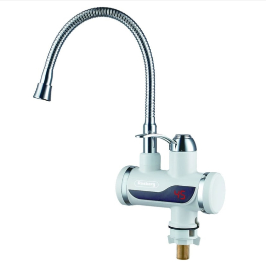 Нагревател за вода с гъвкав чучур Rosberg R57100CW, За плот, С дисплей, До 60C, Бял